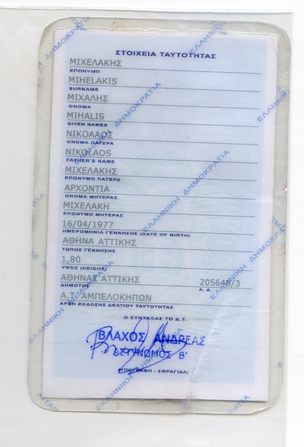 Στην πλαστή ταυτότητα που βρέθηκε επάνω του μετά τη σύλληψη του, ως ημερομηνία γέννησης αναγραφόταν η 16-4-1977.