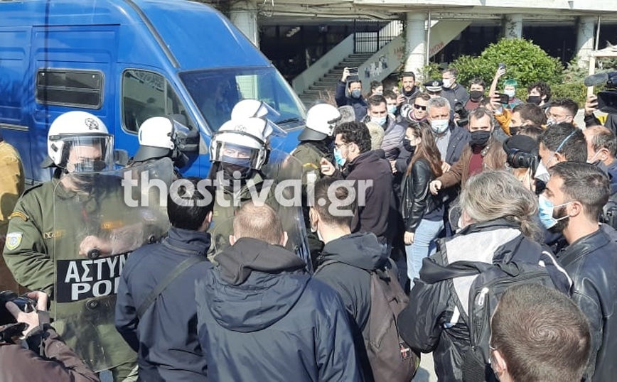 Ένταση σημειώθηκε νωρίτερα μεταξύ φοιτητών και δυνάμεων των ΜΑΤ έξω από το κτίριο διοίκησης του ΑΠΘ.