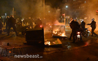 Σύμφωνα με πληροφορίες οι αστυνομικοί χτύπησαν εκπροσώπους των ΜΜΕ ενώ σημειώθηκε κυνηγητό στην Ελευθερίου Βενιζέλου.