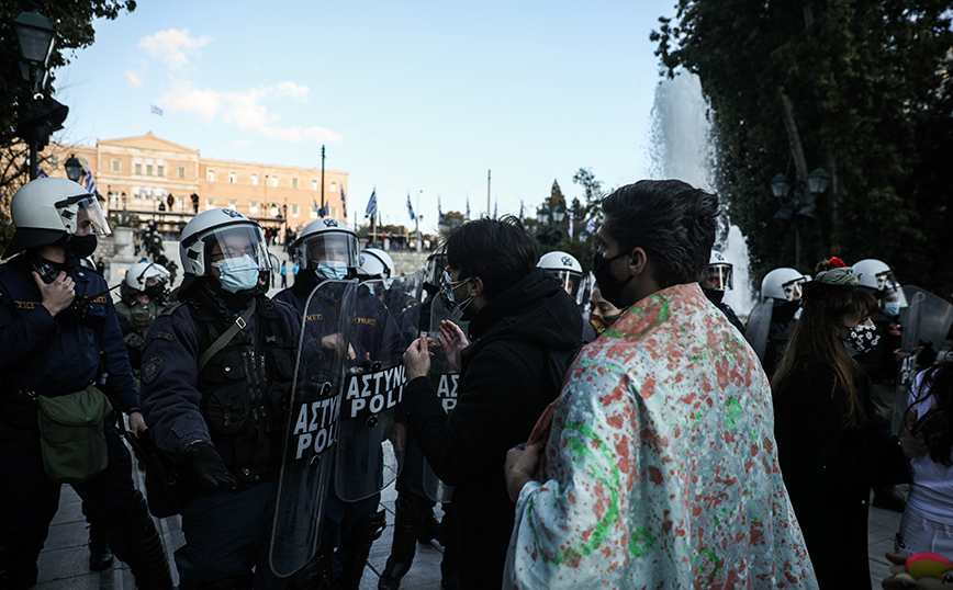 Καλλιτέχνες και σπουδαστές δραματικών σχολών βρέθηκαν σήμερα το απόγευμα στο Σύνταγμα για να διαμαρτυρηθούν για τα προβλήματα που αντιμετωπίζουν πραγματοποιώντας διάφορα δρώμενα στην πλατεία η οποία ήταν σημαιοστολισμένη για τους εορτασμούς των 200 χρόνων από την ελληνική επανάσταση.
