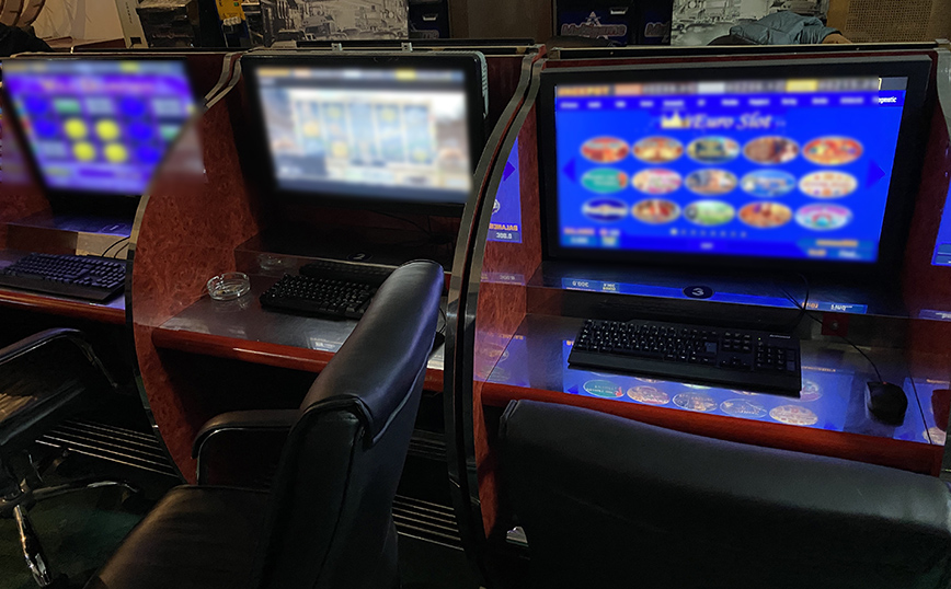 Κατά την έρευνα στον χώρο, σύμφωνα με την αστυνομία, διαπιστώθηκε ότι η είσοδος σε αυτόν γινόταν αρχικά μέσω της πόρτας εισόδου του γκαράζ της πολυκατοικίας και στην συνέχεια μέσω άλλης εσωτερικής θύρας που άνοιγε με πληκτρολόγιο και κωδικό ασφαλείας. Στο χώρο είχαν εγκατασταθεί 12 πλήρεις ηλεκτρονικοί υπολογιστές παράνομων τυχερών παιγνίων συνδεδεμένοι με 3 server και 8 κάμερες, συνδεδεμένες με καταγραφικό και οθόνη, ενώ επιπλέον βρέθηκαν και 86 παιγνιομηχανήματα μεγάλου μεγέθους, εκτός λειτουργίας και χωρίς υπολογιστικά συστήματα.