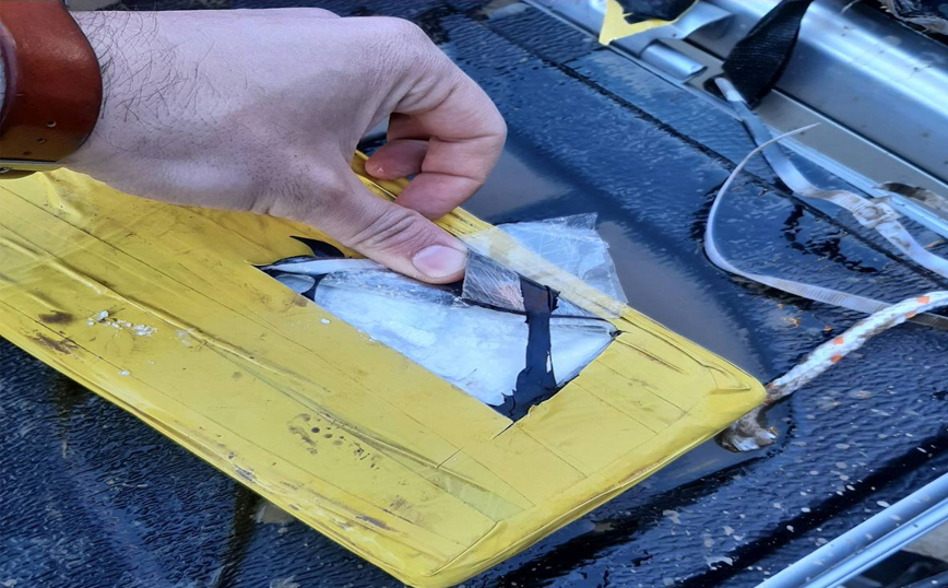 Κατά τον έλεγχο, όπως αναφέρει η ανακοίνωση, εντοπίστηκε και εν συνεχεία ανασύρθηκε από τα ύφαλα του πλοίου και εντός του χώρου των οχετών αναρρόφησης, ένας σάκος εντός του οποίου υπήρχαν τριάντα οκτώ πλαστικές συσκευασίες με κοκαΐνη.