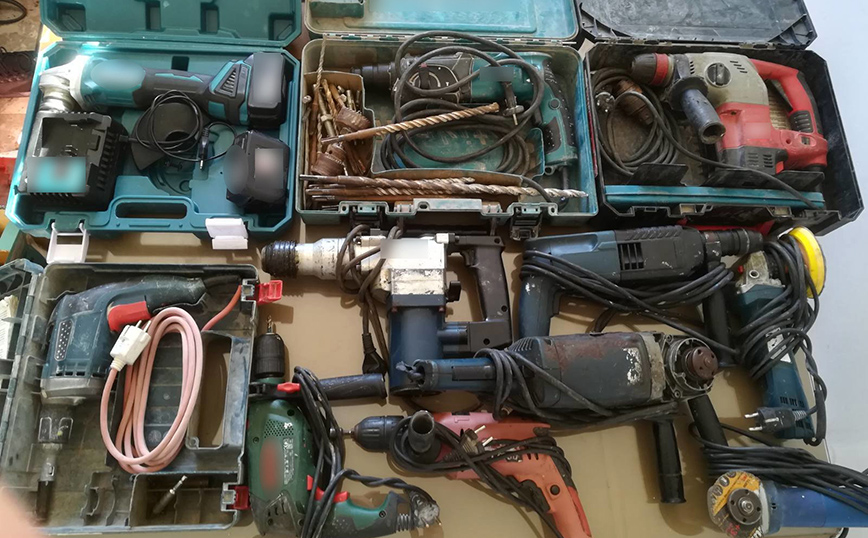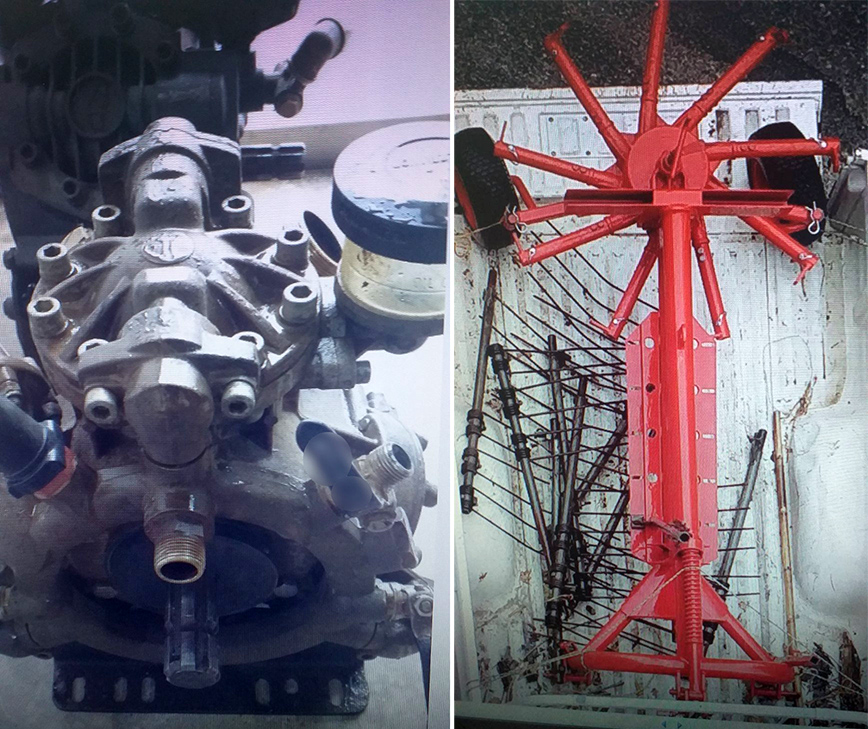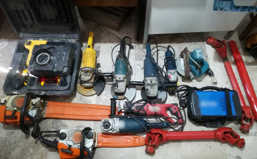 - Εξαρτήματα γεωργικών μηχανημάτων και πλήθος εργαλείων (έξι αλυσοπρίονα, εννέα ηλεκτρικοί τροχοί, πέντε ηλεκτρικά τρυπάνια, τρία χορτοκοπτικά, δυο σταυροί αγροτικού ελκυστήρα, πέντε κατσαβίδια, ηλεκτρική σέγα, κ.α)