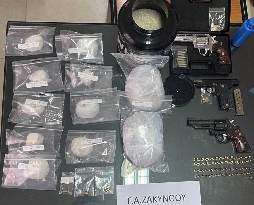 Έναν 60χρονο συνέλαβαν οι αρχές στη Ζάκυνθο. Σε έρευνα στο σπίτι του, στην πόλη της Ζακύνθου, βρέθηκαν επιμελώς κρυμμένες και κατασχέθηκαν συσκευασίες με κοκαΐνη, συνολικού βάρους 479,4 γραμμαρίων, συσκευασίες με ακατέργαστη κάνναβη, συνολικού βάρους 523 γραμμάριων.