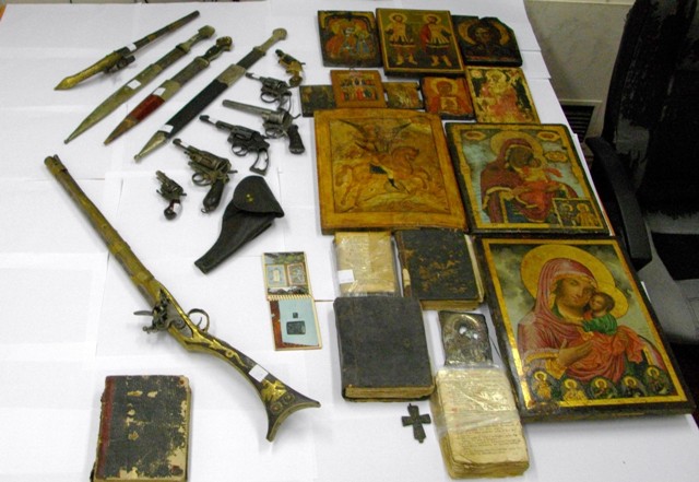Συνελήφθη προχθές (30-10-2014), από αστυνομικούς του Τμήματος Πολιτιστικής Κληρονομιάς και Αρχαιοτήτων της Διεύθυνσης Ασφάλειας Αττικής, 60χρονος ημεδαπός για παράνομη κατοχή αρχαίων αντικειμένων και όπλων. Σε βάρος του σχηματίσθηκε ποινική δικογραφία για παράβαση της Νομοθεσίας για την προστασία των αρχαιοτήτων και εν γένει της πολιτιστικής κληρονομιάς και περί όπλων.