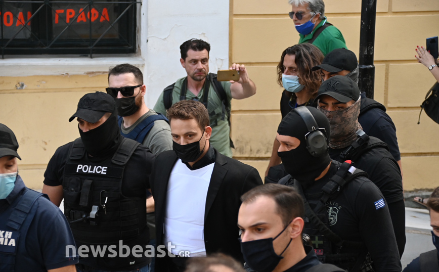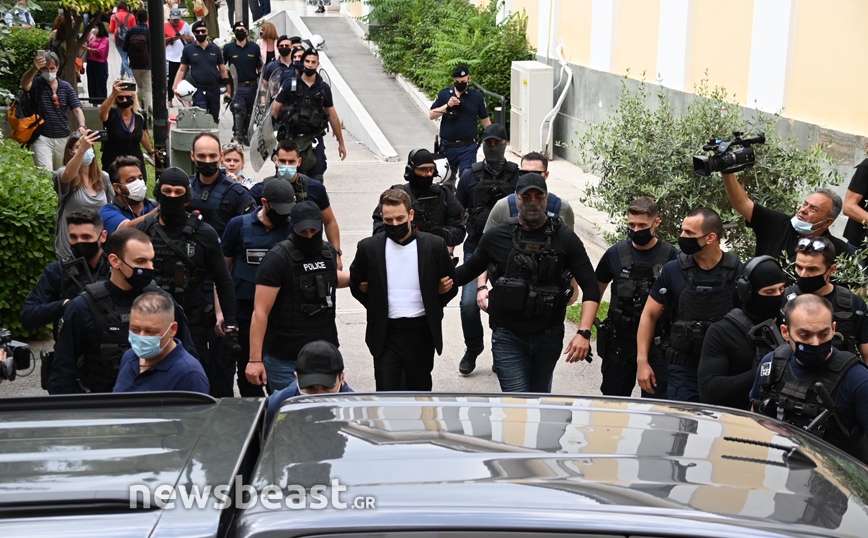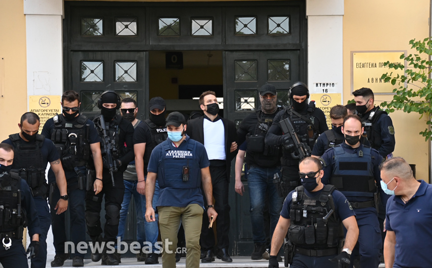 Ο 33χρονος φορώντας αλεξίσφαιρο με τη συνοδεία ισχυρής αστυνομικής δύναμης έφτασε στα δικαστήρια της Ευελπίδων στις 17:00 και οδηγήθηκε στον Εισαγγελέα, όπου εκτελέστηκε το ένταλμα σύλληψης που εκδόθηκε σε βάρος του.