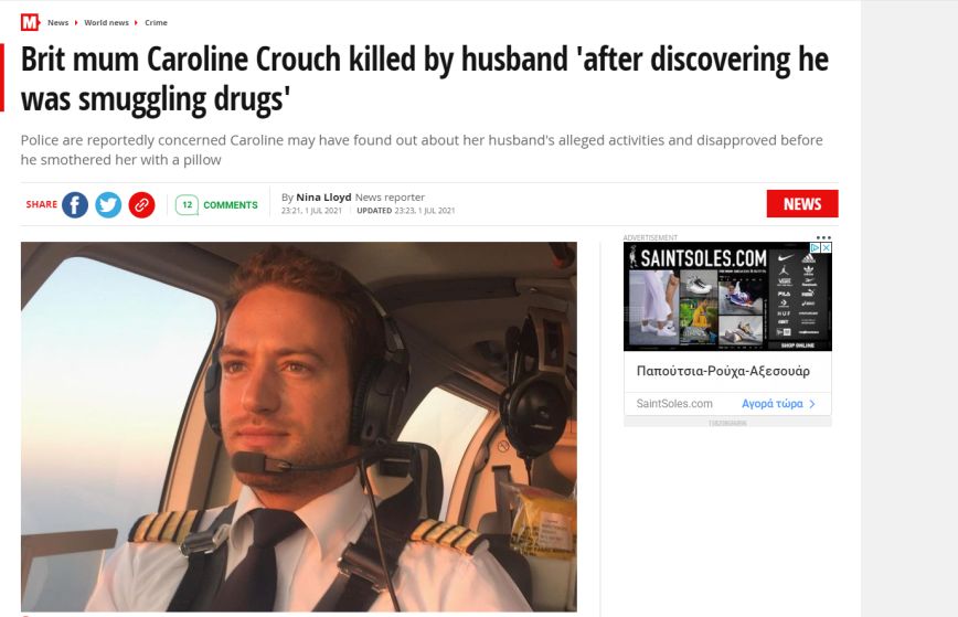 Η Mirror κάνει τώρα λόγο για ανησυχίες στην Ελληνική Αστυνομία ότι «ο σύζυγος της βρετανίδας μητέρας Καρολάιν Κράουτς τη σκότωσε όταν ανακάλυψε ότι χρησιμοποιούσε το ελικόπτερό του για να διακινεί ναρκωτικά για καρτέλ».