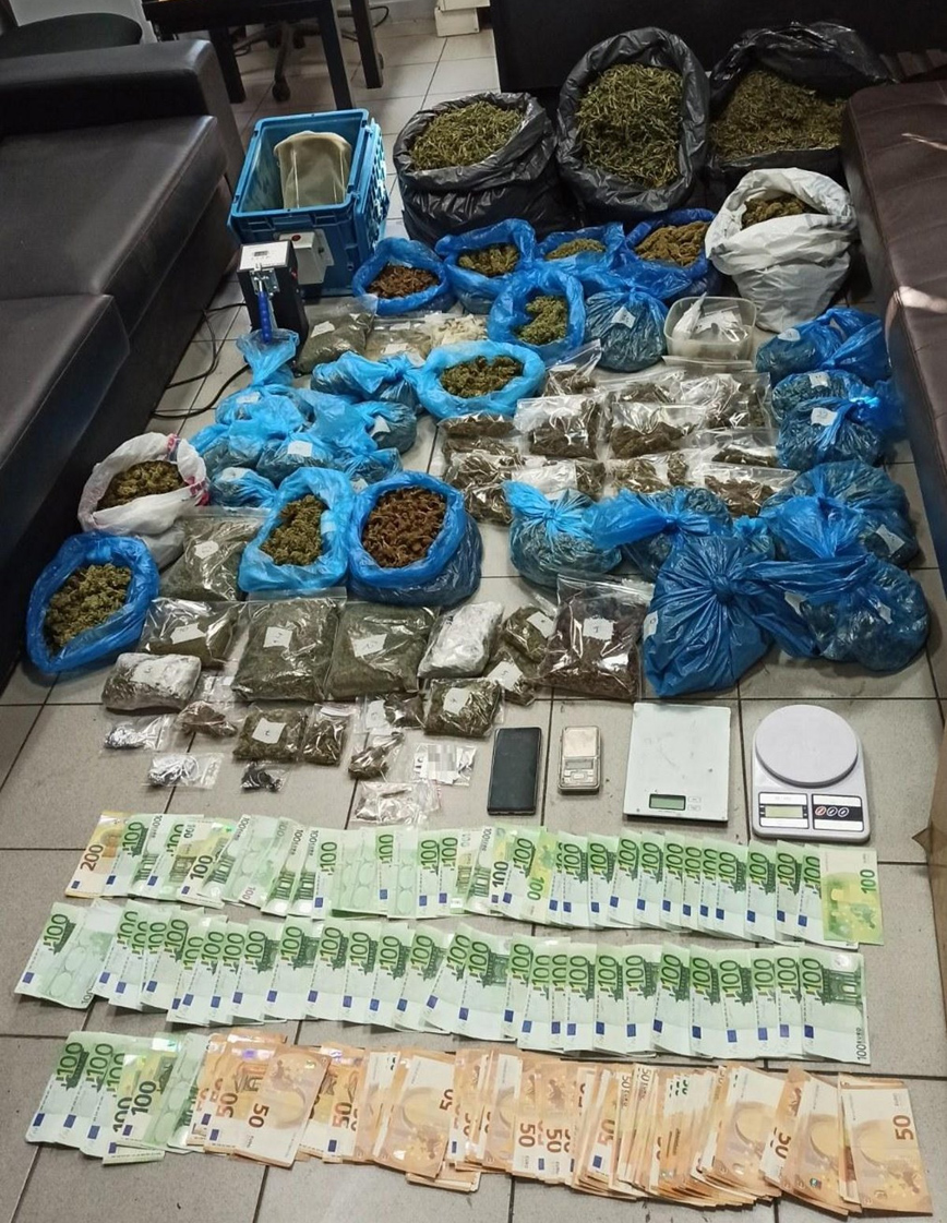 Στις έρευνες μεταξύ άλλων κατασχέθηκαν πάνω από 12 κιλά κάνναβη, κοκαΐνη και 12.700 ευρώ.