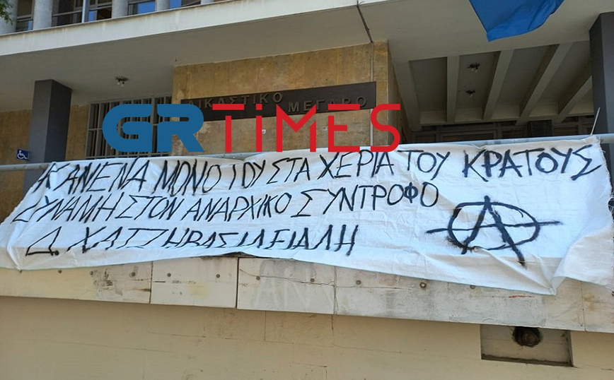 Έξω από το Δικαστικό Μέγαρο Θεσσαλονίκης πραγματοποιήθηκε συγκέντρωση αλληλεγγύης από μέλη του αντιεξουσιαστικού χώρου. Ανάρτησαν πανό που έγραφε «κανένας μόνος στα χέρια του κράτους. Δύναμη στον αναρχικό σύντροφο Δ. Χατζηβασιλειάδη» ενώ πέταξαν και σχετικά φειγ- βολάν. Φώναζαν συνθήματα όπως: «Τέλος στο κεφάλαιο, οι μόνοι τρομοκράτες , αλληλεγγύη στους ενόπλους αντάρτες” και “το πάθος για τη λευτεριά είναι δυνατότερα απ’ όλα τα κελιά».