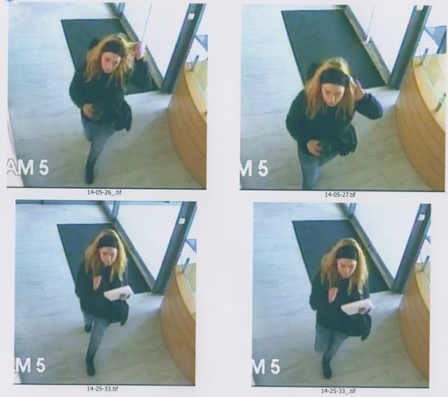 Στις φωτογραφίες η καταζητούμενη από τις Αρχές απεικονίζεται σε στιγμιότυπα εικόνων κλειστού κυκλώματος καμερών ασφαλείας, τέλη Δεκεμβρίου του 2014 και αρχές Ιανουαρίου του 2015.