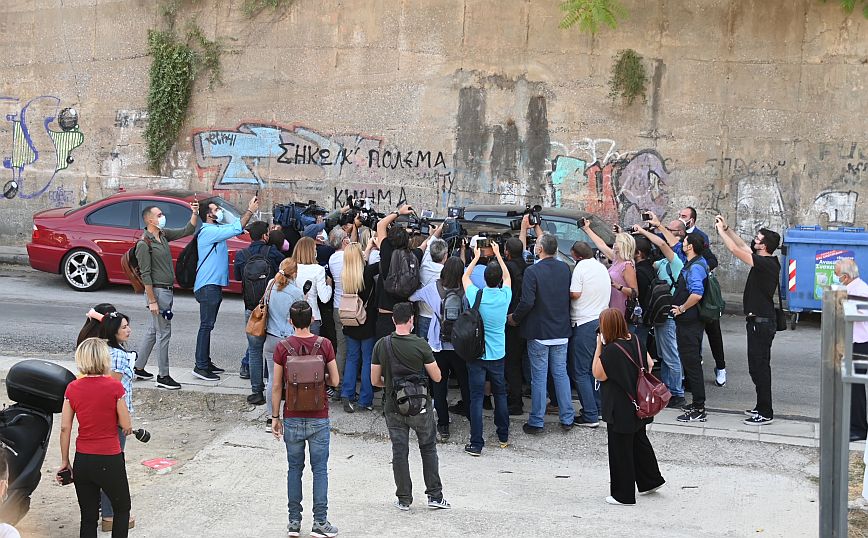 Φωτορεπόρτερ και δημοσιογράφοι καναλιών δημιούργησαν γύρω της έναν ασφυκτικό κλοιό, με φωνές να ακούγονται μέσα από τον στενό κύκλο, από τον οποίο ήρθε και η παράκληση του δικηγόρου της Απόστολου Λύτρα να της αφήσουν λίγο χώρο για να περάσει.