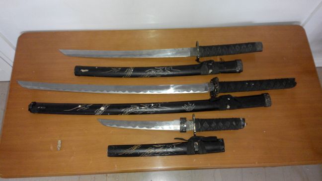 Επιπλέον η δικογραφία που έχει σχηματιστεί σε βάρος του περιλαμβάνει το αδίκημα της παράνομης οπλοκατοχής, καθώς στο σπίτι του, στα Γιαννιτσά, βρέθηκαν και κατασχέθηκαν τρία σπαθιά τύπου σαμουράι. Ο συλληφθείς οδηγείται στον εισαγγελέα πλημμελειοδικών Έδεσσας.