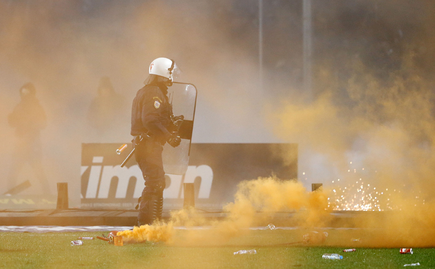 Τα επεισόδια ξεκίνησαν όταν οπαδοί του «Δικεφάλου» εισέβαλαν στον αγωνιστικό χώρο, πετώντας αντικείμενα, φωτοβολίδες και πυρσούς, ενώ επιτέθηκαν κατά αστυνομικών των ΜΑΤ, που έσπευσαν να τους αναχαιτίσουν.