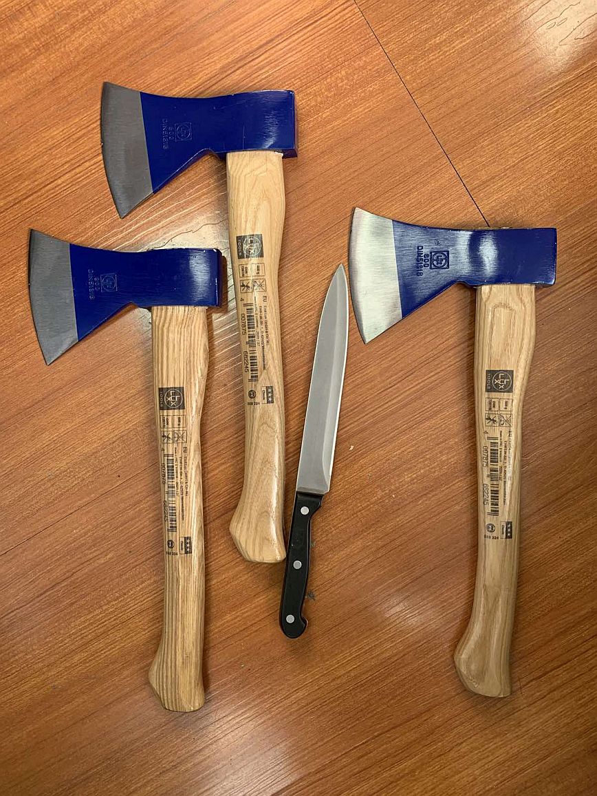 Φωτογραφίες από το… «οπλοστάσιο» που κουβαλούσαν μαζί τους οι 15 συλληφθέντες οπαδοί (σ.σ. κάποια απ’ αυτά είχαν προλάβει να τα πετάξουν) πριν την αναμέτρηση του Απόλλωνα Σμύρνης με τον Άρη στο γήπεδο της Ριζούπολης, έδωσε στη δημοσιότητα η ΕΛ.ΑΣ.