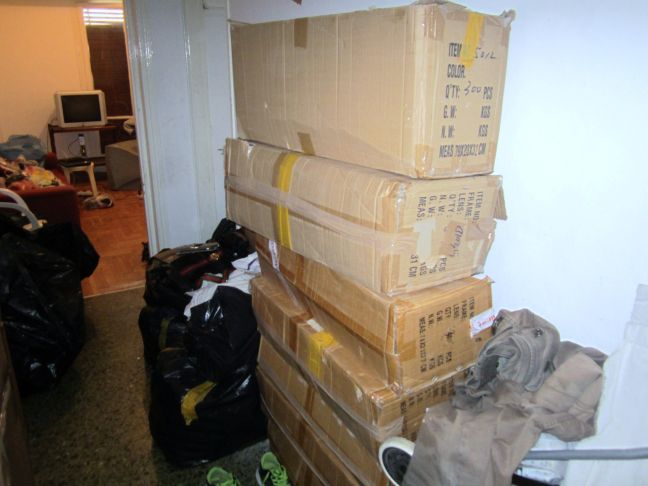 Όπως διαπιστώθηκε, στον παραπάνω χώρο οι συλληφθέντες αποθήκευαν μεγάλο αριθμό προϊόντων απομίμησης (γυαλιά, πορτοφόλια, τσάντες, ρολόγια, φουλάρια, παπούτσια κλπ) που έφεραν εμπορικά σήματα διαφόρων επώνυμων εταιρειών και τα οποία στη συνέχεια διέθεταν στην αγορά. Μέρος αυτών απέστελλαν ταχυδρομικά με κιβώτια, σε άλλες χώρες.