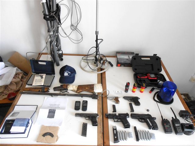 Κατά τη διάρκεια της επιχείρησης της Αστυνομίας κατασχέθηκαν μεταξύ άλλων δέκα αρχαία κινητά μνημεία, πέντε πιστόλια και μία κυνηγετική καραμπίνα.