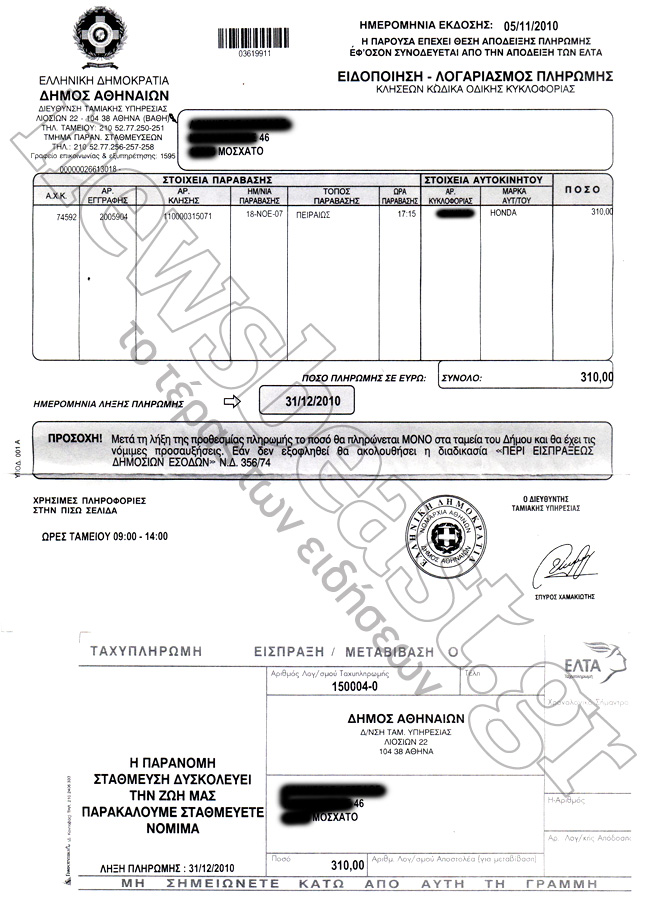 «Και στη ΓΑΔΑ βέβαια μου λένε ότι δεν μπορούν να κάνουν κάτι γιατί το θέμα μου έχει παραπεμφθεί στο δήμο Αθηναίων. Και εγώ δεν μπορώ να αποδείξω το δίκιο μου αλλά θέλουν να πληρώσω μέχρι το τέλος του έτους 310 ευρώ».