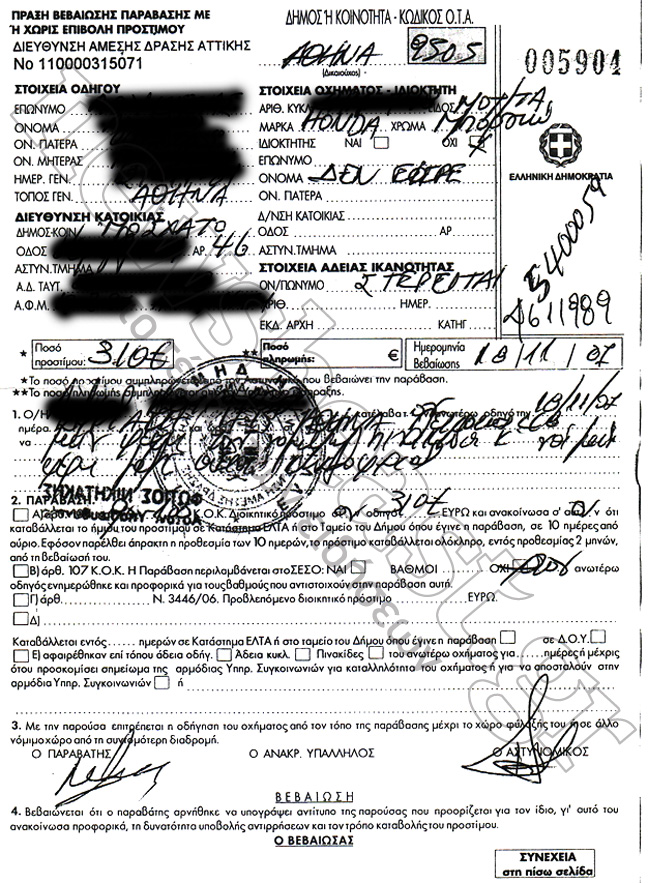 «Μηχανή δεν έχω. Ούτε έχω οδηγήσει ποτέ. Και ξαφνικά μου έρχεται στη διεύθυνση κατοικίας μου κλήση της Τροχαίας» καταγγέλλει στο newsbeast.gr πολίτης (τα στοιχεία του είναι στη διάθεσή μας) που δηλώνει θύμα εξαπάτησης.