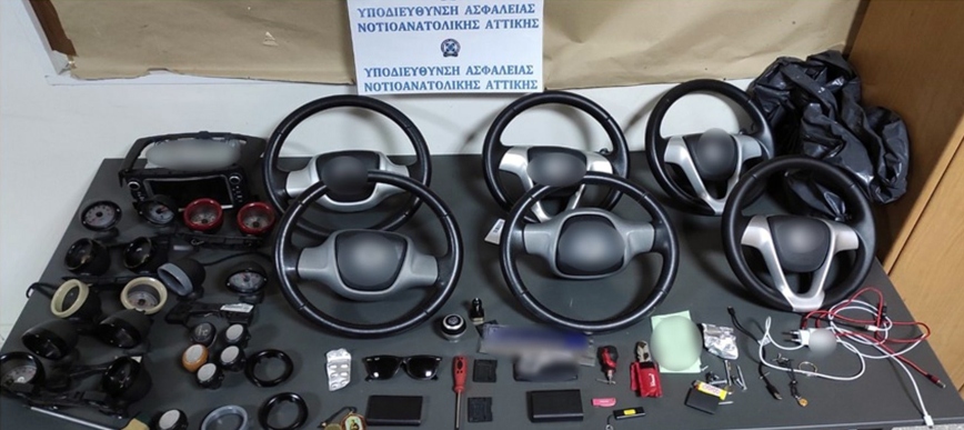 Οι δικυκλιστές της ΕΛ.ΑΣ. εντόπισαν ένα όχημα –μάρκας Smart κι αυτό- και αποφάσισαν να ελέγξουν τους δύο επιβάτες. Έκπληκτοι διαπίστωσαν ότι στο πορτμπαγκάζ του οχήματος είχαν τιμόνια, όργανα, λεβιέδες ταχυτήτων κ.ά. εξαρτήματα από συνολικά έξι Ι.Χ. αυτοκίνητα.