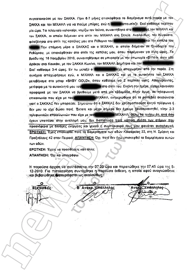 Το newsbeast.gr σας παρουσιάζει και δεύτερη έκθεση ένορκης εξέτασης που αφορά στη νέα υπόθεση τρομοκρατίας που εξιχνίασαν οι ελληνικές αρχές, αυτή τη φορά ενός μάρτυρα, ο οποίος ανέφερε χαρακτηριστικά ότι οι Μιχαήλ Δημήτριος και Σακκάς Κωνσταντίνος αρέσκονταν στην… καλή ζωή αφού σε δύο σημεία της κατάθεσής του λέει ότι μέσα σε ένα βράδυ επισκέφτηκαν μια μπυραρία στο Κουκάκι, όπου κάθισαν 3-4 ώρες και στη συνέχεια «επισκέφτηκαν» γνωστό μπαρ με καλλίγραμμες κοπέλες επί της Συγγρού.