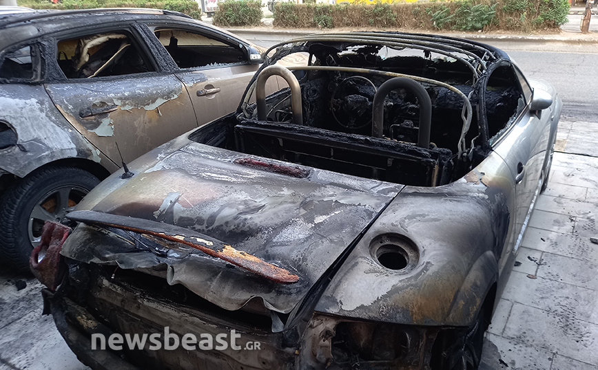 Δύο άγνωστοι δράστες, με καλυμμένα τα χαρακτηριστικά των προσώπων τους, προσέγγισαν το κατάστημα και τοποθέτησαν εμπρηστικούς μηχανισμούς στα οχήματα που ήταν σταθμευμένα ακριβώς απέξω.