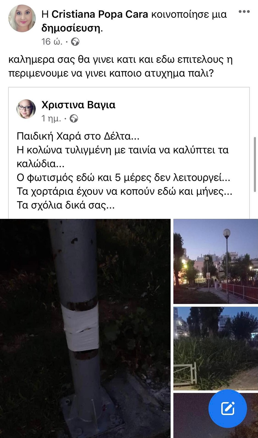 Τέλος, τα χορτάρια έχουν να κοπούν εδώ και μήνες, όπως επισημαίνει πολίτης που σχολιάζει χαρακτηριστικά «τα σχόλια δικά σας…»