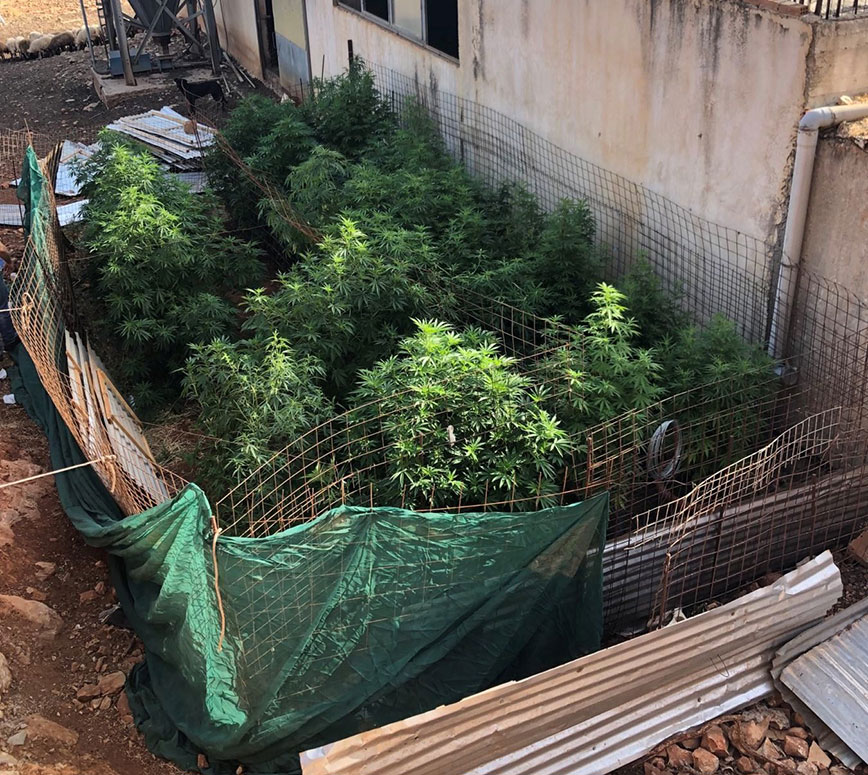 Από τις έρευνες βρέθηκαν να καλλιεργούνται επιμελώς σε τρεις ειδικά διαμορφωμένους χώρους συνολικά εξήντα τέσσερα δενδρύλλια κάνναβης ύψους έως τρία μέτρα, ευρισκόμενα μέρος αυτών στο στάδιο της συγκομιδής.