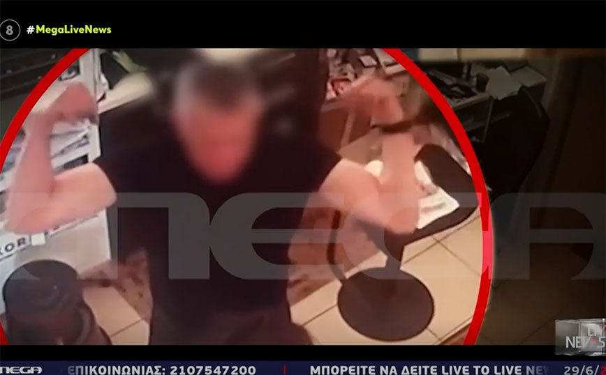 Ο 55χρονος καθ’ ομολογίαν συζυγοκτόνος επιτίθεται φραστικά στη γυναίκα ενώ όπως φαίνεται και στα πλάνα κάποια στιγμή την ταρακουνάει προκειμένου να της τραβήξει την προσοχή και να συνεχίσει εκείνη να τον κοιτάει. Σε άλλο πλάνο, φαίνεται να της δείχνει τα μπράτσα του ενώ της ζητάει επιτακτικά να την ακολουθήσει στο δωματιάκι που υπάρχει στο φαρμακείο.