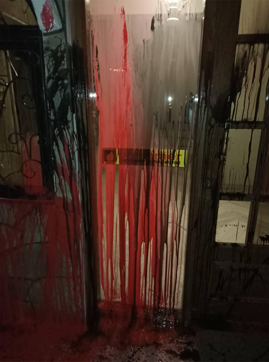 Ανάλογη επίθεση με μπογιές, για τον ίδιο λόγο, είχε προηγηθεί λίγες μέρες νωρίτερα από την ίδια συλλογικότητα στο επαγγελματικό γραφείο του προέδρου του Δικηγορικού Συλλόγου Θεσσαλονίκης και μέλους της Πολιτικής Επιτροπής της ΝΔ, Δημήτρη Φινοκαλιώτη.
