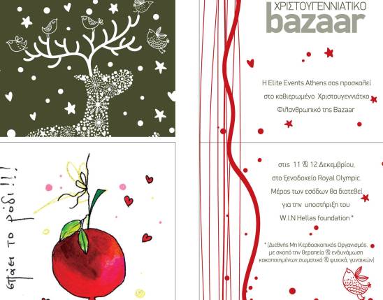 H Elite Events Athens διοργανώνει το 2ο Χριστουγεννιάτικο Φιλανθρωπικό Bazaar για να ενισχύσει τον φιλανθρωπικό οργανισμό «W.I.N Hellas» το Σάββατο 11 και Κυριακή 12 Δεκεμβρίου.