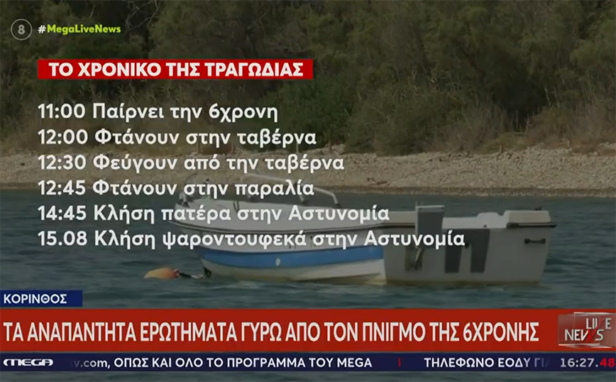 Κρίσιμο είναι το χρονικό διάστημα των δυο ωρών, από τη 1 παρά τέταρτο όταν πατέρας και κόρη έφτασαν στην παραλία, μέχρι τις 3 παρά τέταρτο, όταν ο 42χρονος έχει ήδη φτάσει στο σπίτι του κι έχει καλέσει την αστυνομία για να πει ότι η κόρη του πνίγεται.