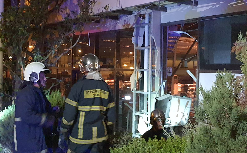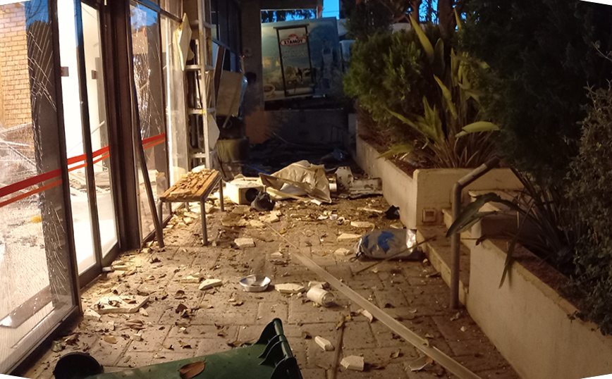 Εικόνα καταστροφής άφησε πίσω της η συμμορία που λίγο πριν τις 2:00 τα ξημερώματα ανατίναξε ATM που βρίσκονταν τοποθετημένο στην πρόσοψη υποκαταστήματος σούπερ μάρκετ στην Αγίου Αντωνίου στα Βριλήσσι.