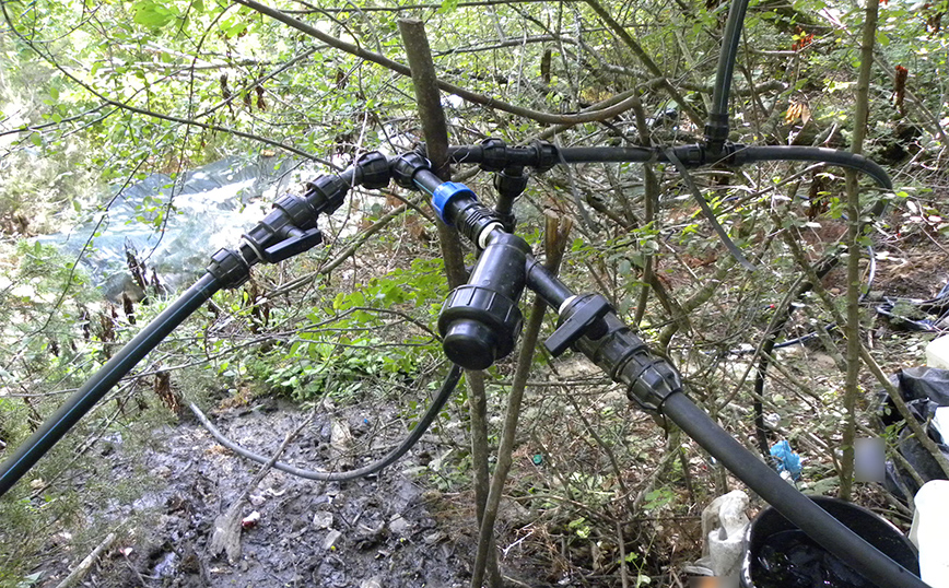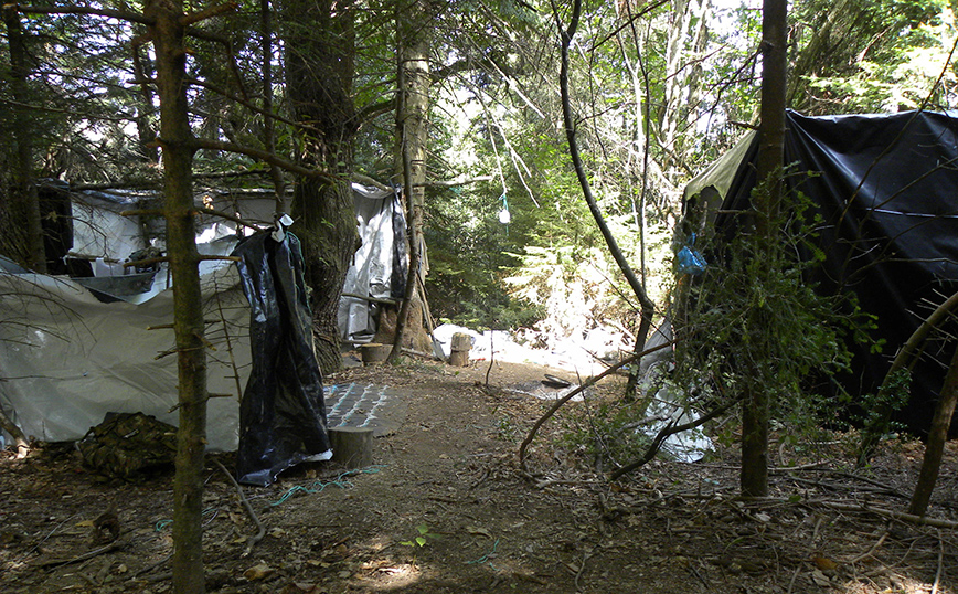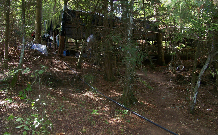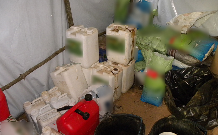 - Διέμεναν σε πρόχειρα παραπήγματα, όπου βρέθηκαν οικιακά σκεύη, τρόφιμα, κλινοσκεπάσματα και άλλα αντικείμενα που παρείχαν τη δυνατότητα στους δράστες να διαβιούν εκεί, ενώ παράλληλα είχαν τη δυνατότητα να επιτηρούν την ευρύτερη περιοχή, ώστε να αντιλαμβάνονται έγκαιρα τυχόν προσέγγιση των διωκτικών Αρχών.