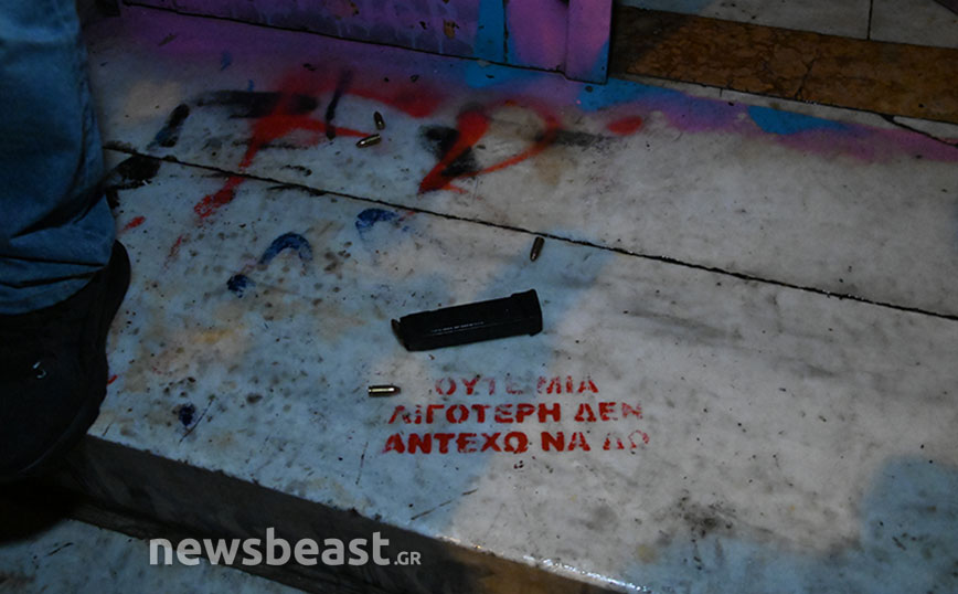 Κατά τη διάρκειά των επεισοδίων, όπως φαίνεται και στις φωτογραφίες του Newsbeast, ο γεμιστήρας ενός αστυνομικού έπεσε στα σκαλιά εισόδου μίας πολυκατοικίες.