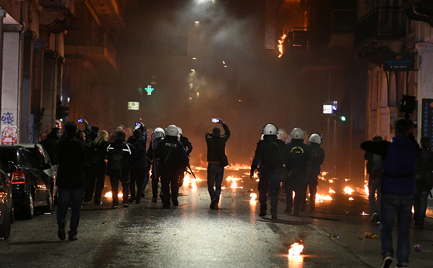 Πανικός έγινε στην ουρά της δεύτερης πορείας με άτομα του αναρχικού χώρου και αστυνομικούς στην Κορίνθου, στο ύψος της Ερμού και της Αγίου Νικολάου, να ανταλλάσουν μολότοφ και δακρυγόνα. Άγνωστοι έριξαν μολότοφ στις αστυνομικές δυνάμεις, ενώ φωτιά εκδηλώθηκε και σε πολυκατοικία σε διαμέρισμα πρώτου ορόφου, από ρίψη μολότοφ.