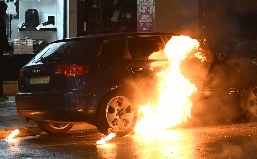 Στην οδό Κορίνθου υπήρξαν σπασμένα γυαλιά, καμένοι κάδοι και μυρωδιά δακρυγόνου, με τα συνεργεία του δήμου να απομακρύνουν τα απομεινάρια της καταστροφής.