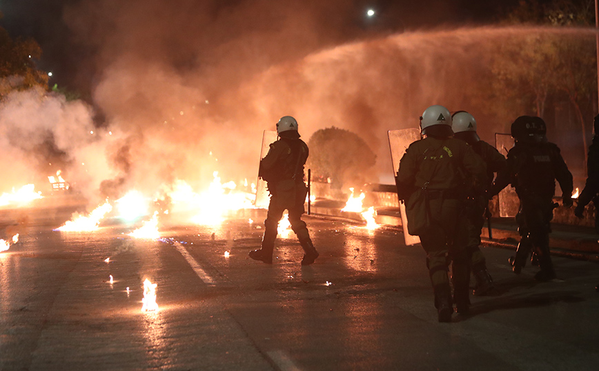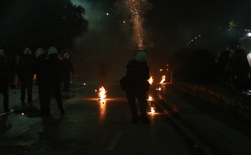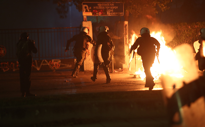 Με ορμητήριο την Πολυτεχνική Σχολή, ομάδες κουκουλοφόρων συγκρούστηκαν με δυνάμεις της αστυνομίας, ρίχνοντας βόμβες μολότοφ, πυροτεχνήματα, πέτρες, μάρμαρα κι άλλα αντικείμενα. Οι αστυνομικοί απάντησαν με χρήση χημικών και κρότου λάμψης. Όπως έγινε γνωστό, δύο αστυνομικοί τραυματίστηκαν και μεταφέρθηκαν στο 424 Στρατιωτικό Νοσοκομείο για την παροχή των πρώτων βοηθειών.