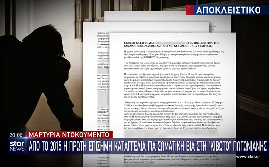 Σύμφωνα με ρεπορτάζ του σταθμού, πρώην εργαζόμενη παιδαγωγός στην Κιβωτό του Κόσμου κατήγγειλε πως από το 2015 είχε κάνει επίσημη καταγγελία για σωματική βία στο Ίδρυμα της Πωγωνιανής όπου και εργαζόταν.