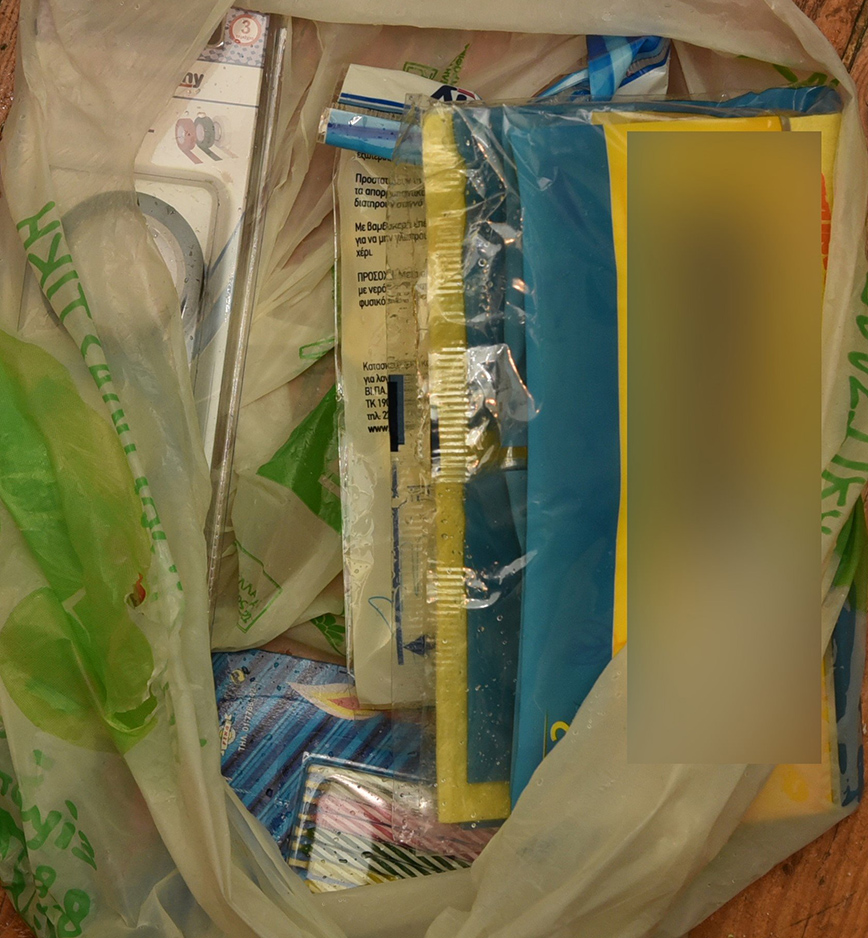 - σακούλα που περιείχε μονωτικές ταινίες, ελαστικά γάντια καθαρισμού, απορροφητικό πανί καθαρισμού και κεράκια,