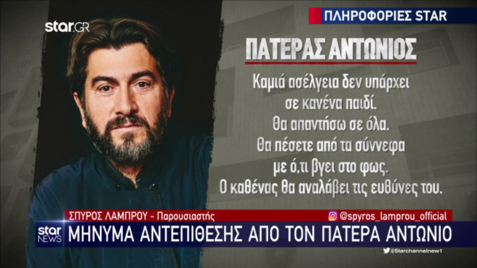 «Καμία ασέλγεια δεν υπάρχει σε κανένα παιδί. Θα απαντήσω σε όλα. Θα πέσετε από τα σύννεφα με ό,τι βγει στο “φως”. Ο καθένας θα αναλάβει τις ευθύνες του», λέει στο star ο πατέρας Αντώνιος.