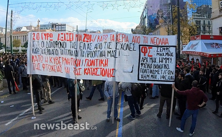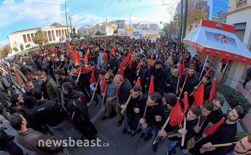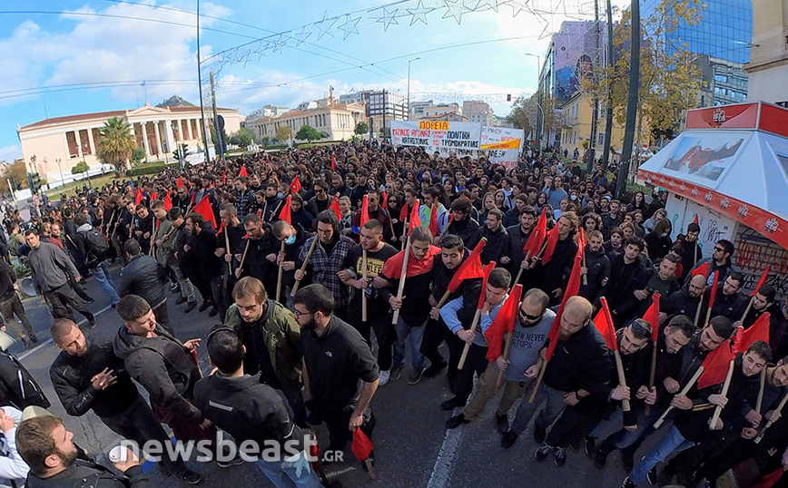 Τα καλέσματα για συγκεντρώσεις και πορείες ήταν για τις 12:00 και τις 18:00 το απόγευμα στα Προπύλαια και στα Εξάρχεια, στο σημείο που ο 16χρονος έπεσε νεκρός από τη σφαίρα του πρώην πλέον ειδικού φρουρού της ΕΛ.ΑΣ.