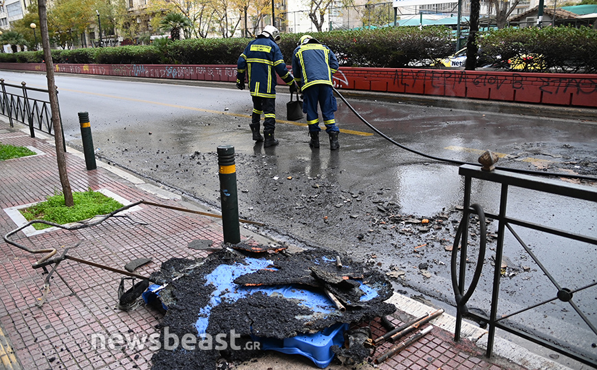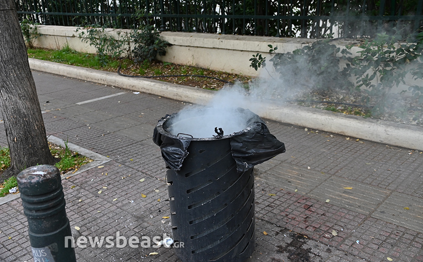 Τα άτομα αυτά έβαλαν φωτιές και σε κάδους, με την επέμβαση της Πυροσβεστικής να είναι άμεση.