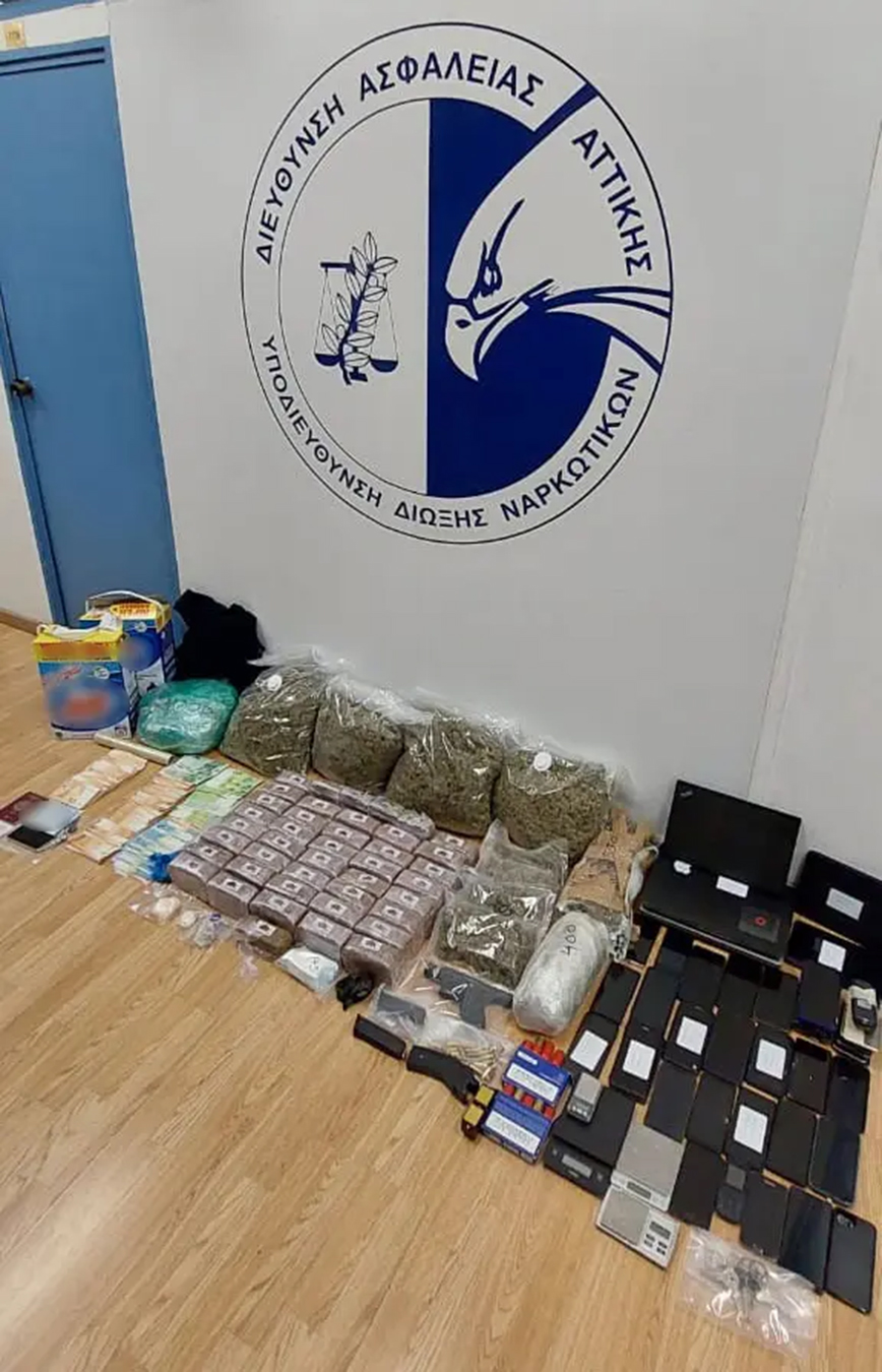 Μετά από έρευνες σε οικίες στις περιοχές του Αμαρουσίου, της Φιλοθέης, καθώς και σε οικία βραχυχρόνιας μίσθωσης στον Άλιμο, βρέθηκαν συνολικά και κατασχέθηκαν: