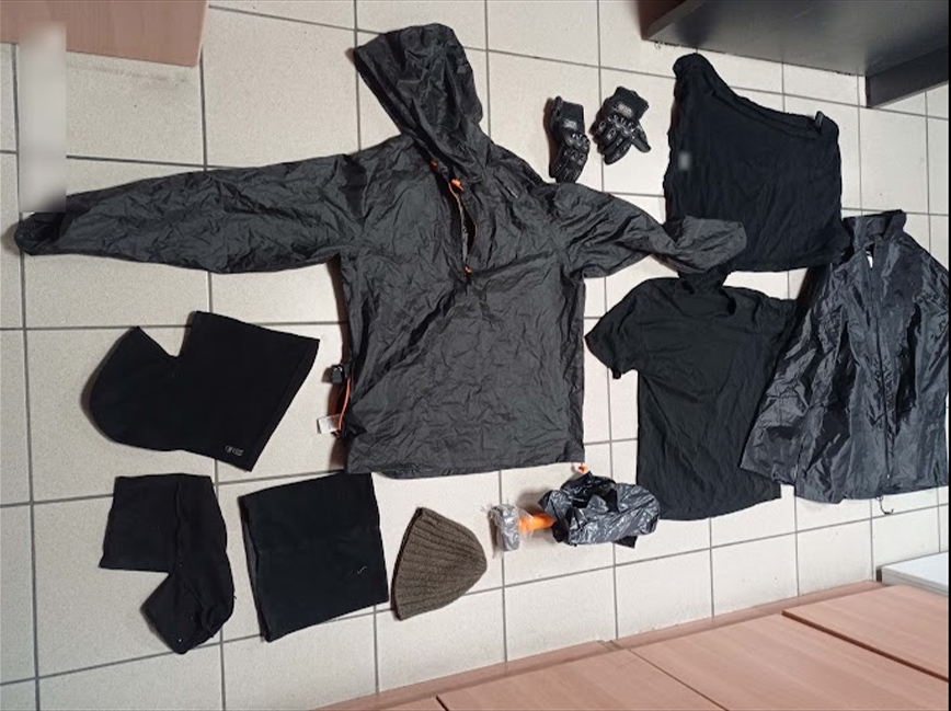 Στην κατοχή των δύο συλληφθέντων, όπως μεταδίδει το Αθηναϊκό Πρακτορείο Ειδήσεων βρέθηκαν -μεταξύ άλλων- και κατασχέθηκαν τσάντες, εντός των οποίων υπήρχαν μαύρες κουκούλες τύπου full face, μαύρα μπουφάν με ενσωματωμένες κουκούλες (πέραν των μπουφάν που ήδη φορούσαν), γάντια μοτοσικλέτας και μία βαριοπούλα, η λαβή της οποίας ήταν τυλιγμένη με σακούλα.