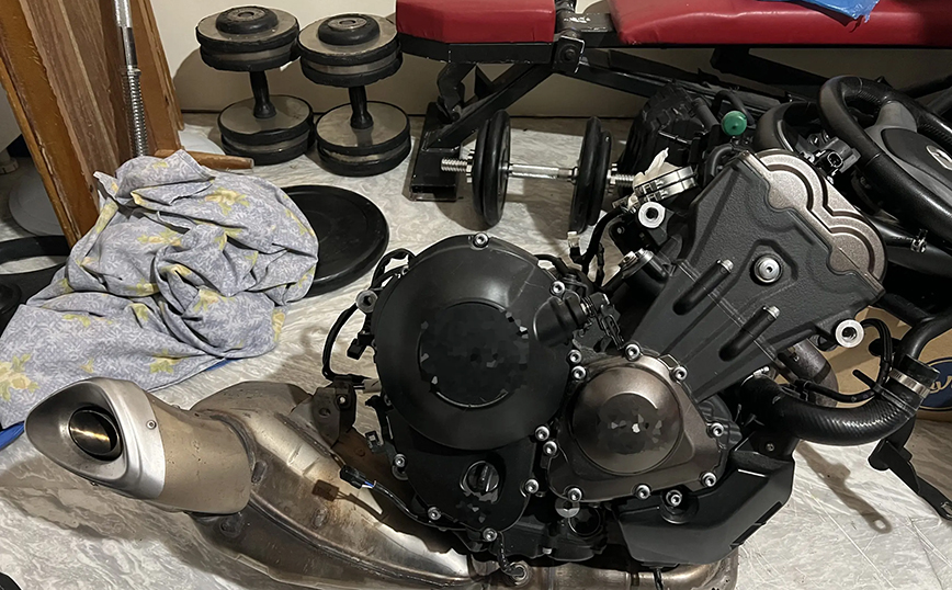 Μετά από έρευνες στην κατοχή του κατηγορούμενου, σε σπίτια και σε διάφορους χώρους στάθμευσης στην Πετρούπολη, στο Χαϊδάρι και στο Ίλιον, βρέθηκαν συνολικά και κατασχέθηκαν: 5 κλεμμένα αυτοκίνητα, 1 μοτοσικλέτα, κλεμμένος κινητήρας, κλεμμένες πινακίδες κυκλοφορίας, 3 τιμόνια αυτοκινήτων, πλήθος ανταλλακτικών αυτοκινήτων και εξαρτημάτων, 54 φυσίγγια εντός σακιδίου, το χρηματικό ποσό των 260 ευρώ και 4 κινητά τηλέφωνα.