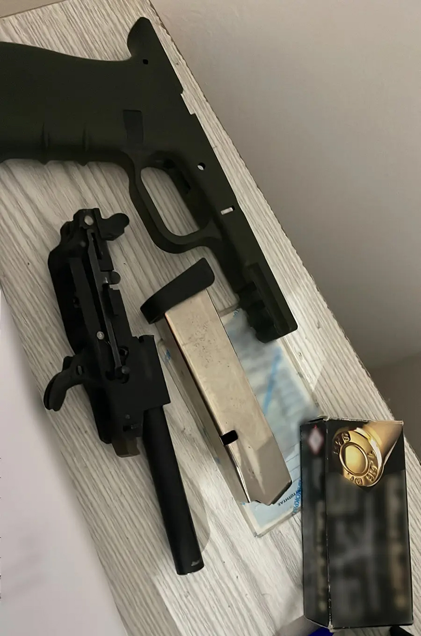 - πλαστική λαβή – σώμα πιστολιού και μηχανισμός πυροδότησης όπλου,