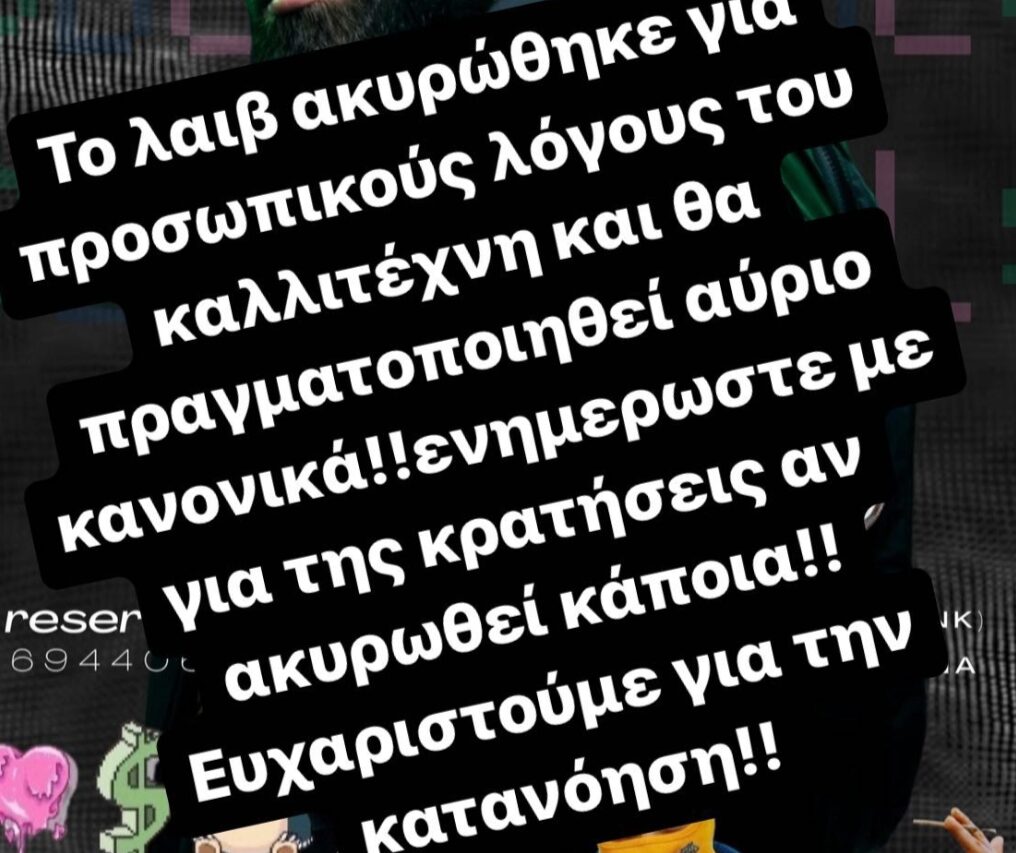 Υπενθυμίζεται ότι ο γνωστός τράπερ συνελήφθη, στην Ιόνια Οδό κοντά στα διόδια της Ρίγανης. Η συναυλία του σε πόλη της Ηπείρου αναβλήθηκε και σύμφωνα με την ανακοίνωση του μαγαζιού θα γίνει κανονικά σήμερα.
