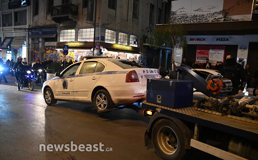 Ομάδα αγνώστων έσπασαν και έβαλαν φωτιά σε περιπολικό που βρισκόταν στην Πλατεία Μοναστηρακίου.
