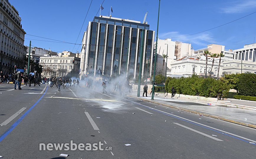 Επεισόδια σημειώθηκαν πριν λίγη ώρα στο Σύνταγμα, μετά την ολοκλήρωση της μεγάλης πορείας για την τραγωδία των Τεμπών. Τα επεισόδια ξεκίνησαν στην κάτω πλευρά της πλατείας Συντάγματος όταν άγνωστοι πέταξαν μολότοφ, πέτρες, φωτοβολίδες και άλλα αντικείμενα προς τις αστυνομικές δυνάμεις, που απάντησαν κάνοντας χρήση χημικών.