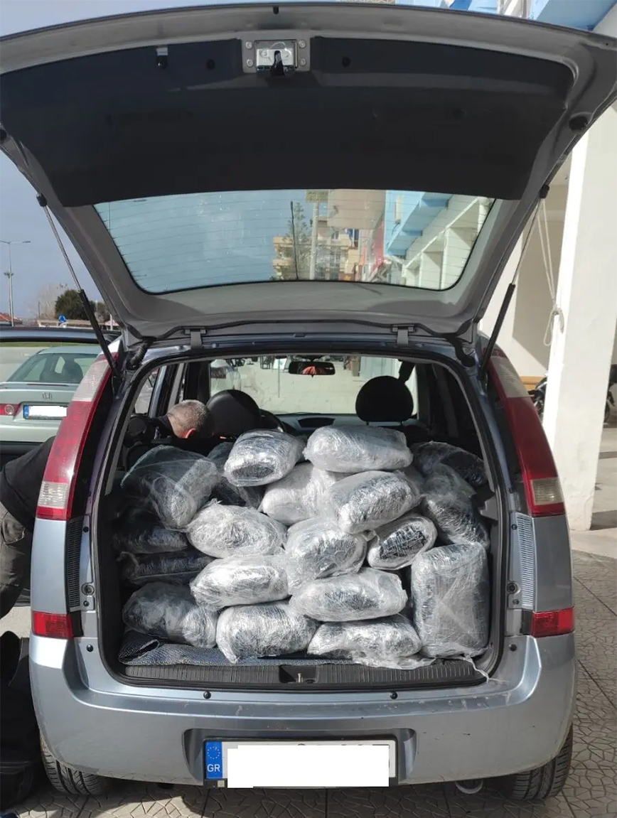 Οι αστυνομικοί κατέσχεσαν τα 45 δέματα, το αυτοκίνητο, καθώς και 2,2 γραμμάρια ηρωίνης σε μορφή «βράχου», σύνεργα για τη χρήση ηρωίνης, το χρηματικό ποσό των 100 ευρώ και ένα κινητό τηλέφωνο, τα οποία βρέθηκαν στην κατοχή του 52χρονου οδηγού.